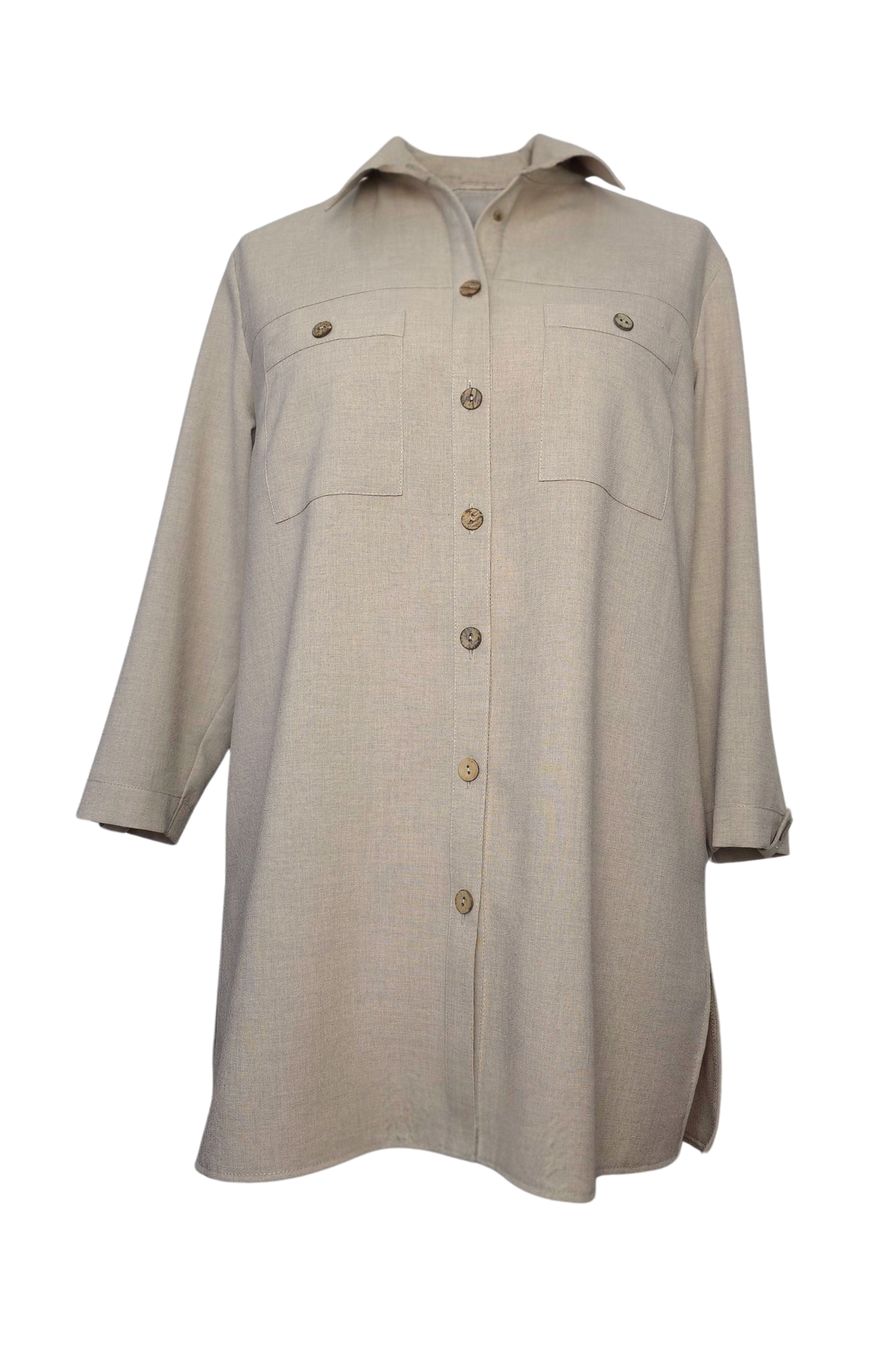 Koszula Lena w ciemnym beżu to propozycja dla kobiet, które cenią naturalne tkaniny, komfort i ponadczasowy styl. Klasyczny, prosty krój oraz długość sięgająca poniżej bioder sprawiają, że model pięknie układa się na sylwetce, zapewniając wygodę przez cały dzień.