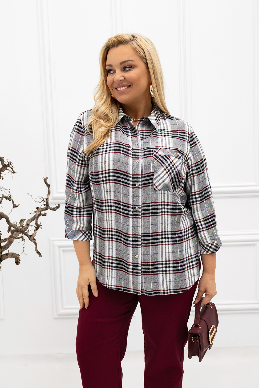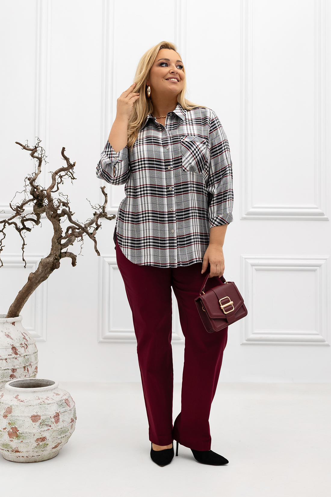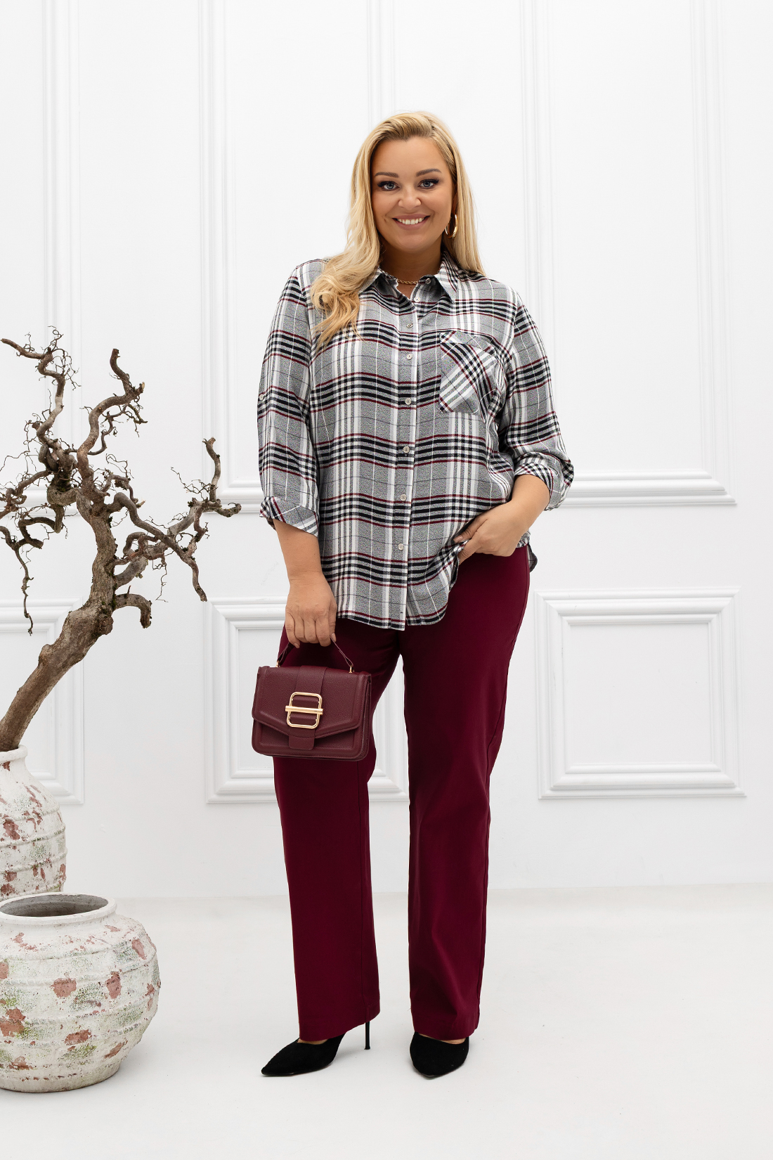 M24818 KOSZULA VIOLET KRATKA SZARA-BORDO