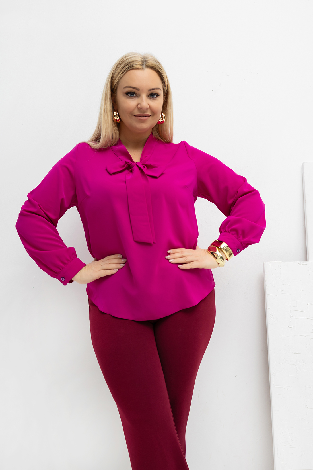 Elegancka bluzka z subtelną krawatką, którą można wiązać w kokardę lub przewiązać luźno w stylu à la krawat, to doskonały wybór zarówno do formalnych, jak i casualowych stylizacji. Lekko taliowany krój podkreśla sylwetkę, zachowując jednocześnie komfort noszenia.