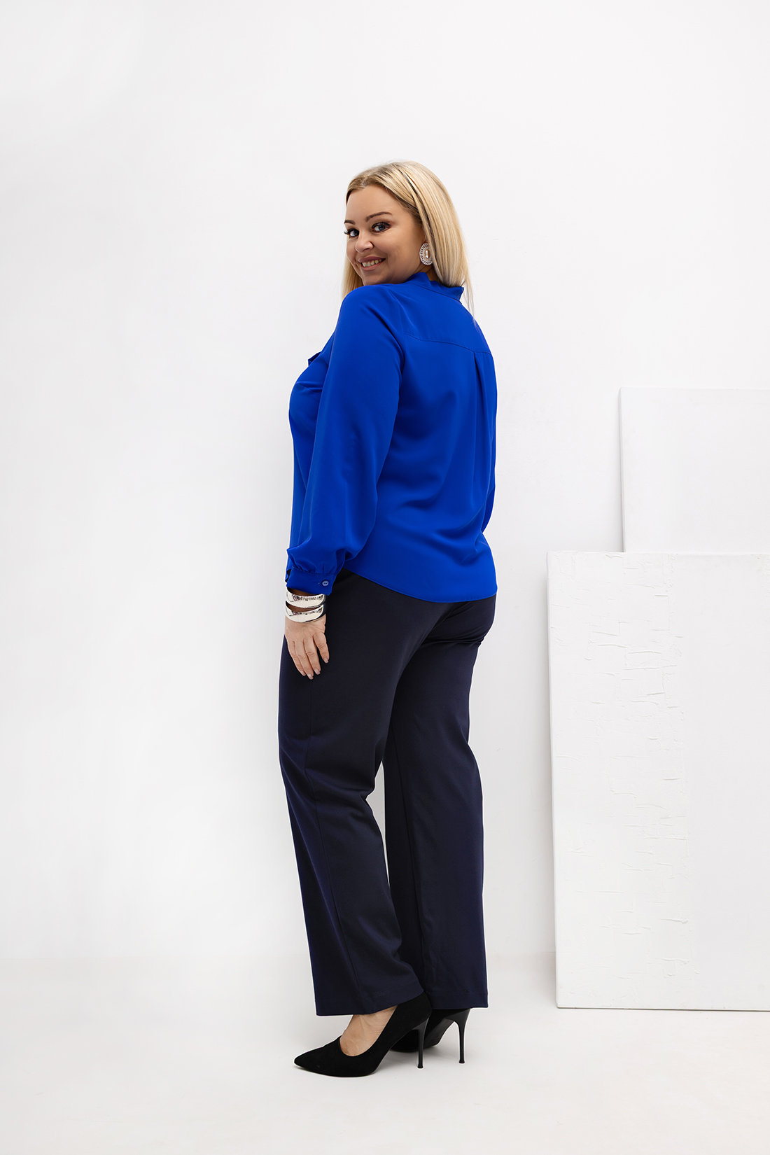 - Kołnierz: klasyczny kołnierz, dodający bluzce wyrafinowanego charakteru.