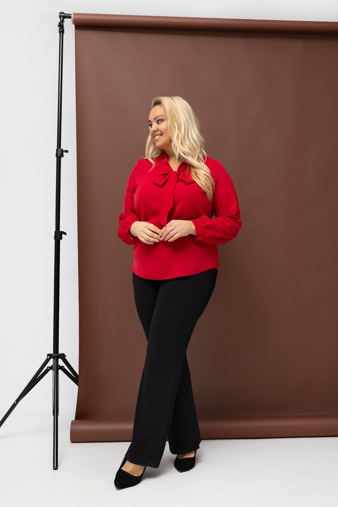 - Modelka: prezentuje bluzkę w rozmiarze 48, ma 168 cm wzrostu.