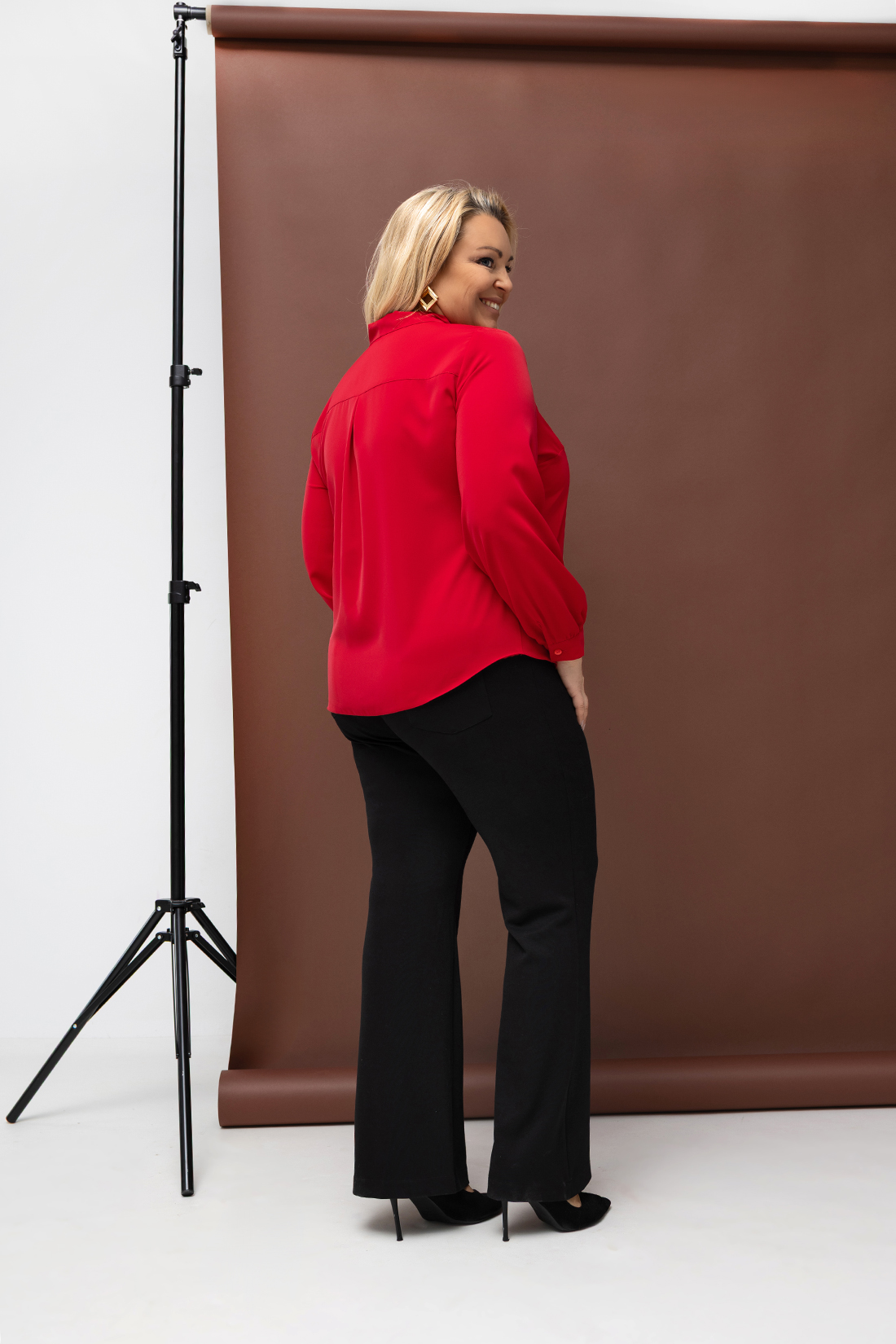 - Kołnierz: klasyczny kołnierz, dodający bluzce wyrafinowanego charakteru.