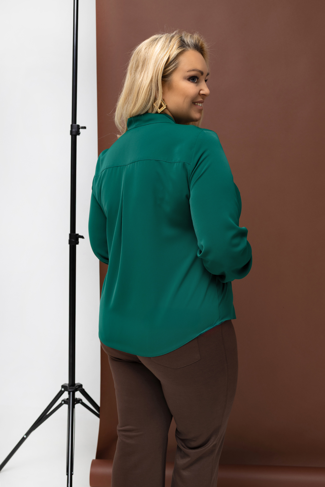 - Kołnierz: klasyczny kołnierz, dodający bluzce wyrafinowanego charakteru.