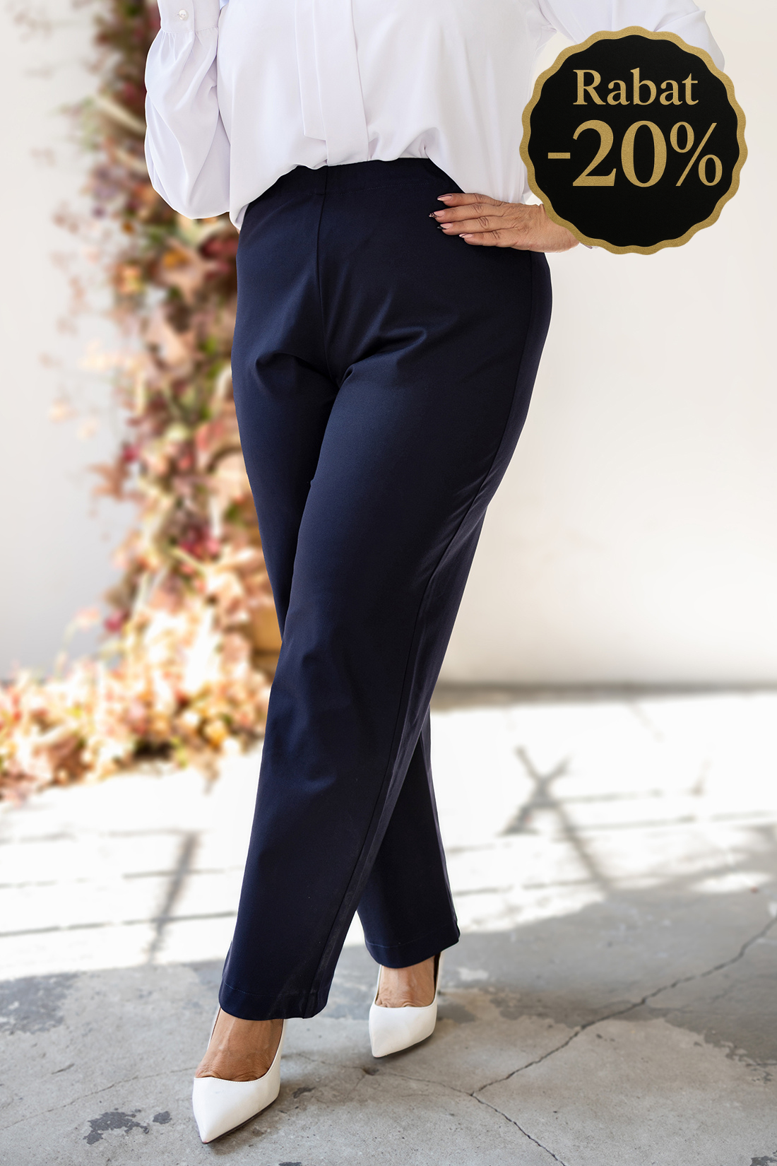 Krój: prosty, z klasycznymi prostymi nogawkami, uniwersalny i pasujący na wiele okazji.